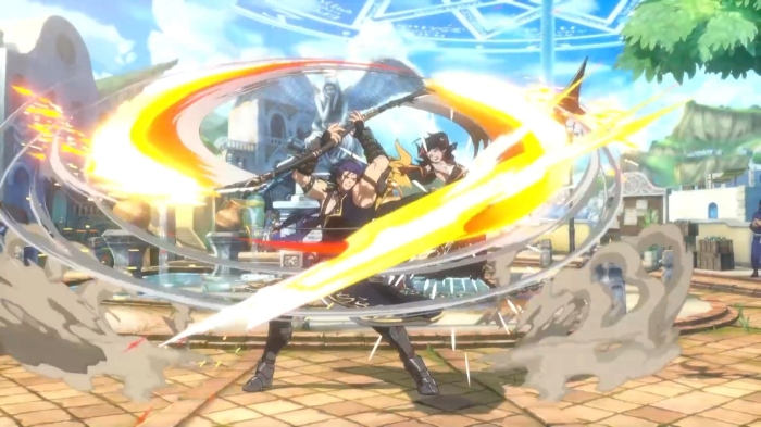 이어 다가오는 상대에게 하단 베기 기술인 '앵클 컷'으로 넘어트린 후 강렬한 회전 베기 동작인 '디베스테이트'로 연속 공격한 뒤 날려버리는 모습을 보여줬다. 이어 원작에선 없던 공중 낙하 동작 이후 '크레센트 슬래쉬'로 바닥에 누운 적을 제압하며 연계했다.