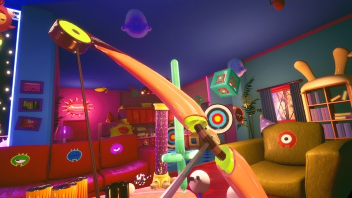 헬로 마이타운은 집안을 침범해 소란을 피우는 '고스트'들을 활이나 표창, 물방울 장난감총 둥을 이용하여 쫓아내는 VR 게임이다. '고스트' 퇴치 외에도 드럼, 실로폰, 야구배트, 볼링 공 등 집안의 사물을 자유롭게 집고 던지고 때릴 수 있는 등 다양한 재미를 제공한다.