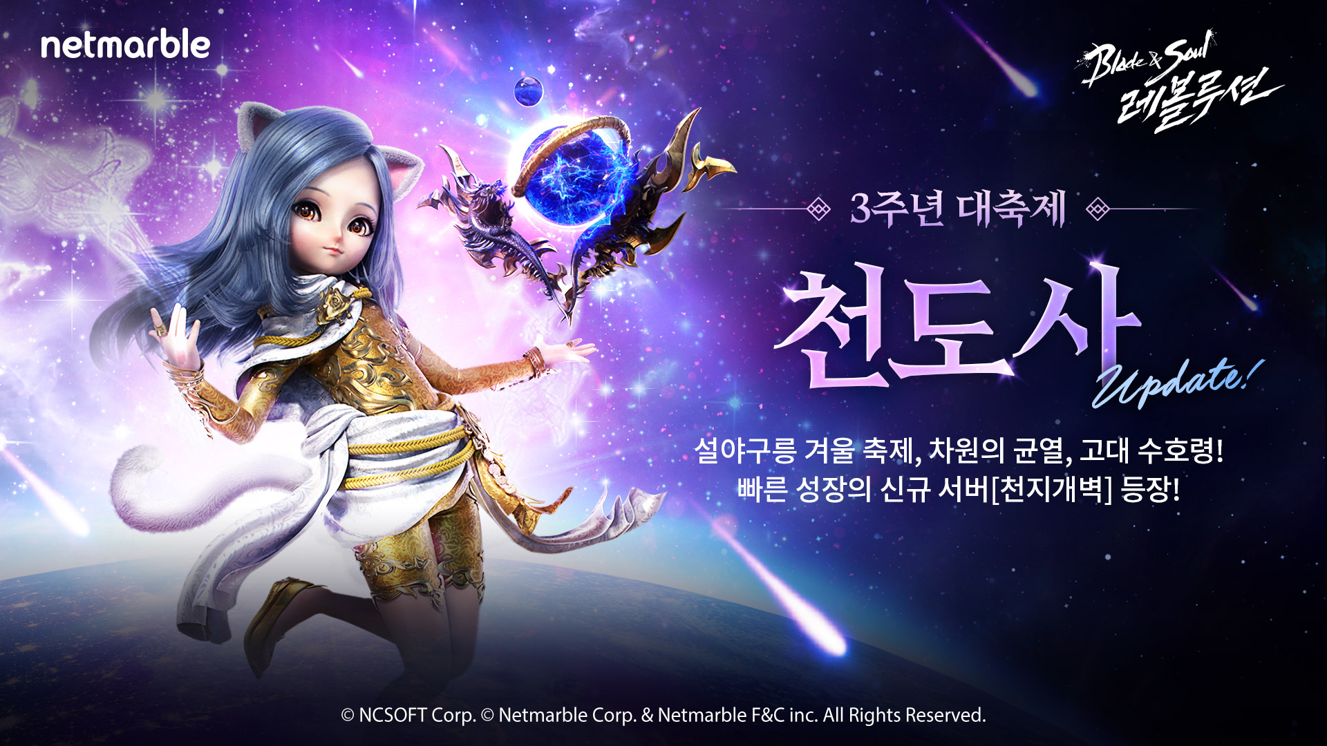 [자료제공 = 넷마블] 넷마블(대표 권영식, 이승원)은 모바일 MMORPG(다중접속역할수행게임) '블레이드 & 소울 레볼루션(개발사 넷마블에프앤씨)’에 3주년 기념 대규모 업데이트를 실시했다고 17일 밝혔다.
