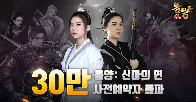 [자료제공= 게임프레소] 언락게임(UnlockGame)은 무협 판타지 모바일 MMORPG ’음양: 신마의 연’의 사전예약에 참여한 유저수가 30만명을 넘었다고 17일 밝혔다. 이는 구글 플레이스토어, 원스토어, 애플 앱스토어의 사전예약자 수를 모두 합한 숫자다.