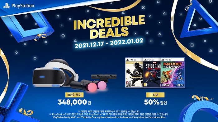 2021년 12월 17일(금)부터 2022년 1월 2일(일)까지 진행되는 플레이스테이션 홀리데이 프로모션 에서는 다음과 같은 플레이스테이션 제품을 할인된 가격에 구매할 수 있다.