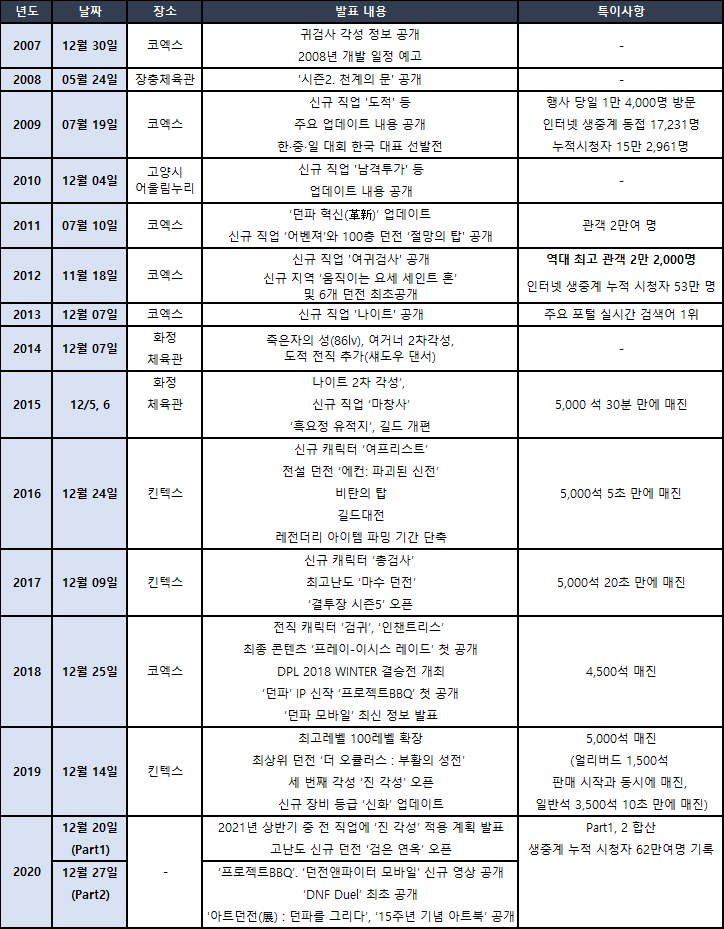 ■ '던전앤파이터 페스티벌' 주요 히스토리