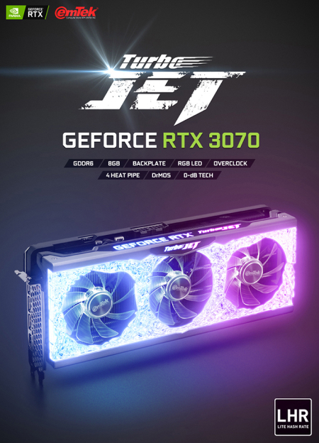 이엠텍아이엔씨의 이엠텍 XENON 지포스 RTX 3070 TURBO JET OC D6 8GB LHR을 비롯한, 이엠텍, XENON, HV, EVGA 지포스 그래픽카드는 이엠텍아이엔씨 고객센터를 통해 무상 3년 보증 서비스를 지원받을 수 있다. 전국 주요 컴퓨터 전문 판매점과 G마켓, 옥션, 11번가 등의 온라인 판매처에서 구매할 수 있으며, 이엠텍 직영 온라인 쇼핑몰 아이바이컴과 기타 온라인 판매처에서도 구매가 가능하다.
