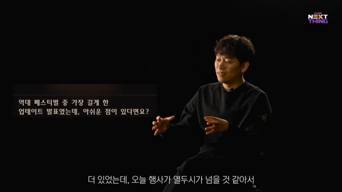 이번 던파 페스티벌에서 가장 중요하게 생각한 부분은 당연할 수도 있지만 업데이트 발표라고 말했다. 다만 만렙 확장을 대단한 내용을 깜짝 공개하듯 포장하는 것이 아니라 당연히 진행해야 하는 것이라는 마음가짐으로 발표에 임했다고 밝혔다.