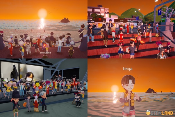 직원들은 휴대전화를 통해, 자사가 서비스중인, <디토랜드>에 접속해 아바타로 참여했으며, 메타버스 내 유투브 실시간 영상을 중계하고, 새해소망 적기, 해돋이 이벤트의 프로그램을 진행했다.