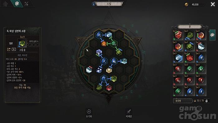 또한, 직업이 존재하지 않으며, 스킬 룬을 이용해 스킬을 습득하고 강화하는 방식으로 진행하기 때문에 세팅의 폭이 굉장히 넓다는 점 또한 매력 포인트다. 헥사 타일로 구성된 스킬판에 스킬룬을 박고 스킬을 강화해 주는 룬을 연결해 같은 스킬을 쓰더라도 어떻게 스킬을 연결했느냐에 따라 전혀 다른 캐릭터가 된다는 점 역시 특징이다. 물론 지나치게 자유로운 세팅은 오히려 세팅에 대한 부담감을 가질 수 있는데, 각 무기마다 사용할 수 있는 룬과 스탯이 지정돼 있어 무기와 스킬 간의 유기적 연계로 최소한의 가이드를 제공한다.