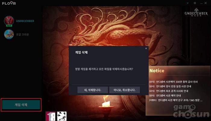 단, 언박싱 테스트(UBT)에 참여했던 이용자의 경우에는 베타 버전 언디셈버의 삭제가 선행적으로 이뤄져야 한다. PC는 FLOOR 플랫폼을 실행해 접속한 후 언디셈버(UNDECEMBER)의 '게임 삭제' 버튼을 눌러 삭제하거나, PC 내 언디셈버가 설치된 경로로 진입해 언디셈버(UNDECEMBER) 베타 버전 파일을 수동으로 삭제하면 된다.