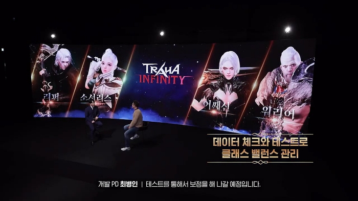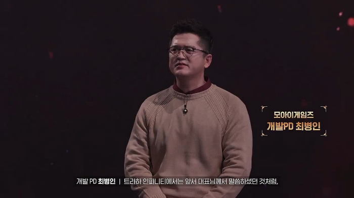 모아이게임즈 이찬 대표와 최병인 개발 PD가 나와 게임 이름을 트라하 인피니티로 지은 이유, 개발에 중점을 두고 추구하는 가치, 차별화 요소 및 과금 요소까지 공개하며 게임을 소개하는 시간을 가졌다.