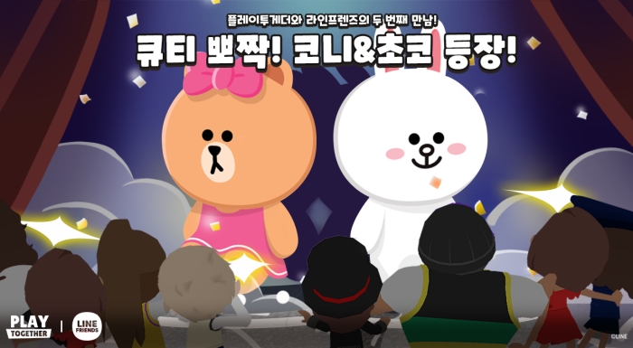 이번 협업에 따라 지난해 11월 라인프렌즈 최초의 버추얼 스토어 오픈과 함께 선보인 ‘브라운(BROWN)’과 ‘샐리(SALLY)’ 등과의 만남에 이어, 또 다른 인기 캐릭터인 ‘코니(CONY)’와 ‘초코(CHOCO)’가 플레이투게더의 주 무대인 카이아 섬에 등장했다. 1월 17일 글로벌 업데이트 이후 유저들은 플레이투게더 내 라인프렌즈 버추얼 스토어에서 언제나 밝고 명랑한 ‘코니’와 리본을 사랑하는 패셔니스트 ‘초코’의 IP를 활용한 신규 요리사 코스튬과 주방가구 아이템을 만나볼 수 있다.