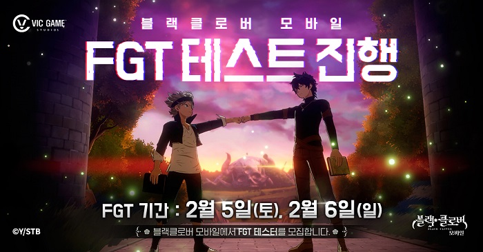 [자료제공 = 빅게임스튜디오] 빅게임스튜디오(VIC game Studios, 대표 최재영)는 2022년 출시 목표로 개발 중인 ‘블랙 클로버 모바일(가칭)’(이하 블랙클로버 모바일) FGT(Focus Group Test)를 2월 5일(토), 6일(일) 양일 진행한다고 금일(20일) 밝혔다.