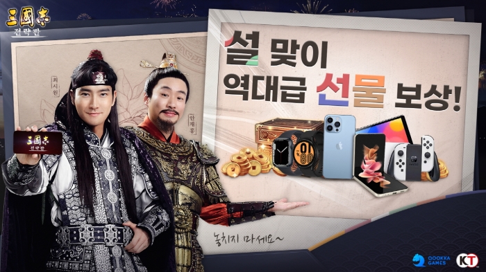 ‘삼국지 전략판’은 이용자와 함께 올해 설 연휴를 기념하고 함께 보내고자 근하신년 이벤트를 계획 중이다. 이번 이벤트에는 ‘삼국지 전략판’을 즐기는 이용자라면 누구나 쉽게 참여할 수 있으며, ‘갤럭시 Z 플립3’, ‘닌텐도 스위치 OLED’, ‘코에이 일러스트레이터 나가노 츠요시 한정판 삽화’를 포함한 큰 보상을 노려볼 수 있다.