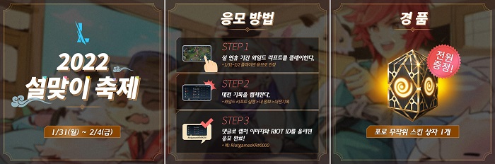 한편, 라이엇 게임즈는 설 명절을 맞이하여 리그 오브 레전드에서도 24일부터 RP 충전 및 모바일 상점 내 파랑 정수(BE) 이벤트를 진행하고 있어 플레이어들의 관심을 한 몸에 받고 있다.