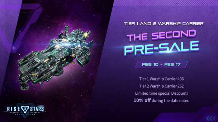 [자료제공 = 위메이드] 위메이드맥스(공동대표 장현국, 이길형)의 자회사 라이트컨에서 개발하고 있는 신작 모바일게임 라이즈 오브 스타즈(RISE OF STARS, 이하 ROS)가 10일부터 NFT가 적용된 ‘모함’ 2차 사전판매 이벤트를 시작한다.