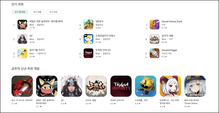대규모 광고 및 마케팅을 진행하지 않고 게임성을 기반으로 한 순수 유저 입소문만으로 ‘퀄리티 좋은 방치형 RPG’라는 반향이 서서히 자리하기 시작했으며, 그 결과 국내와 대만 애플 앱스토어 인기 게임으로 기록한 데 이어, 지난 12일부터는 구글 플레이스토어에서도 최고 인기 게임으로 등극하는 데 성공했다.