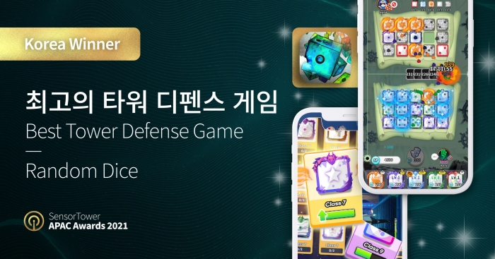 올 해 처음으로 개최된 센서타워 어워즈 2021은 센서타워 플랫폼의 데이터에 기반, 전 세계적으로 큰 반향을 일으키거나 독보적인 지표를 나타낸 앱 또는 퍼블리셔를 선정하고 이를 축하하기 위해 마련되었다. 한국에서는 랜덤다이스와 함께 카카오게임즈, 일곱 개의 대죄, 네이버웹툰 등 총 8개의 앱 및 퍼블리셔가 선정되었다.