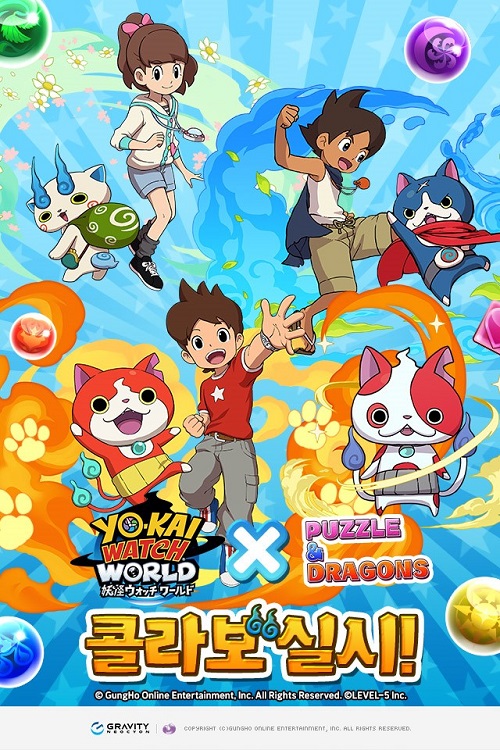 [자료제공 = 그라비티] 겅호 온라인 엔터테인먼트 개발, 그라비티 네오싸이언이 서비스 중인 모바일 액션 퍼즐게임 ‘퍼즐앤드래곤’에서 ‘요괴워치 월드’와 두 번째 콜라보레이션을 28일부터 진행한다.