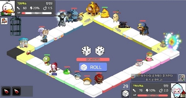 미니게임에서 승리해 메소를 획득하고 주사위를 굴려 몬스터를 길들이고 싸우는 보드게임 월드