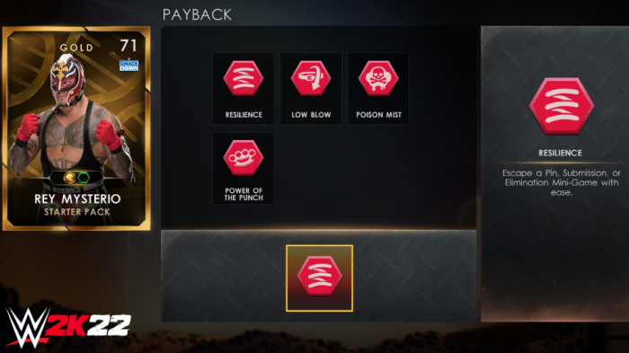 마지막으로, 마이팩션은 클래식한 팀 구성 모드를 새롭게 재해석한 모드로, 플레이어는 WWE 슈퍼스타와 전설적인 선수를 수집, 관리, 업그레이드해 궁극의 4인 팩션을 만들 수 있다.