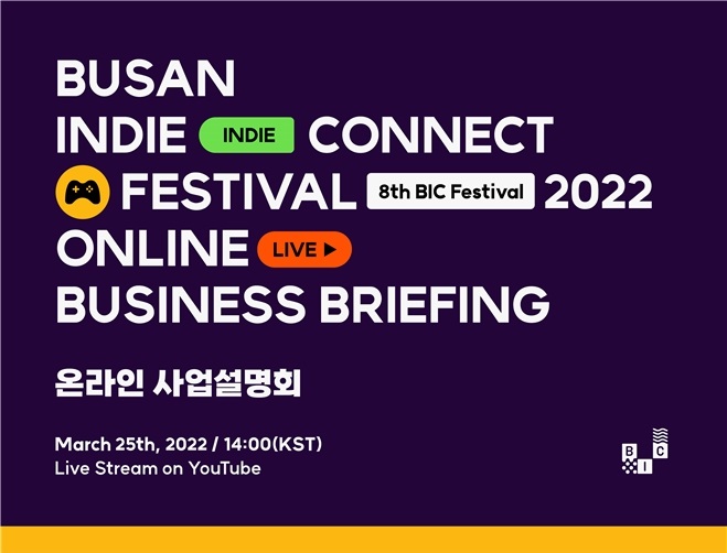 [자료제공 = 부산정보산업진흥원] 부산시(시장 박형준)와 부산정보산업진흥원(원장 정문섭), 사단법인 부산인디커넥트페스티벌조직위원회(조직위원장 서태건)는 글로벌 대표 인디게임 축제인‘부산인디커넥트페스티벌 2022(이하 BIC 페스티벌 2022)’의 설명회를 오는 3월 25일오후 2시 온라인 생중계로 개최한다고 밝혔다.