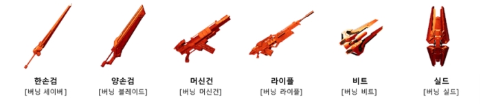 ① 풀 커스텀 물리 계열 무기 '버닝 시리즈' 6개