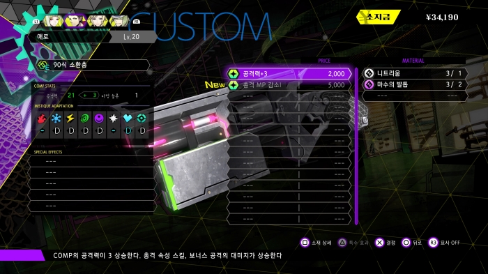 히라타 : 그리고 싶었던 인간 드라마 부분을 어떻게 게임 시스템에 녹여낼지에 대해서는 꽤 고민했습니다. 데빌 서머너라는 직업을 시스템에 잘 도입하고 싶어 데빌 서머너가 악마를 소환하는 COMP의 기능이나 배틀 시스템도 새롭게 만들었습니다. 이번에는 '악마를 다양한 일에 사용하는 단말기'라는 COMP의 특징에 주목하여, 장비할 뿐만 아니라 무기로도 쓸 수 있는 등 COMP 자체로 다양한 일을 할 수 있게 했습니다.