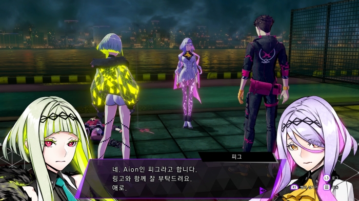 이시다 : 주인공은 플레이어의 분신이기 때문에 테크놀로지를 초월한 존재긴 하지만, 전혀 감정이 없는 캐릭터에게 자신을 겹쳐보는 것은 무리가 있다고 생각했습니다. 그래서 '링고' '피그'라는 인격을 부여하여 말을 하게 했습니다. 차세대 전자 생명체 Aion이라는 존재가 낳은 창조물이지만, 똑똑하거나 지시를 내리는 캐릭터가 아닌 등장인물에게 다가갈 수 있는 캐릭터였으면 좋겠다고 생각했습니다. 말투는 조금 건방지지만요(웃음).