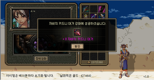 지금도 멈추지 않고 주야장천 강화를 시도하면 불과 10분 만에 억대에 달하는 골드를 탕진할 수 있어 함부로 시도하기 무서운 장비 강화를 골드 걱정 안 하고 원 없이 할 수 있었다. 사용한 골드를 '날려먹은' 골드라고 표현하고 줄임말을 남발하는 키리의 대사도 깨알 같은 개그 요소였다.