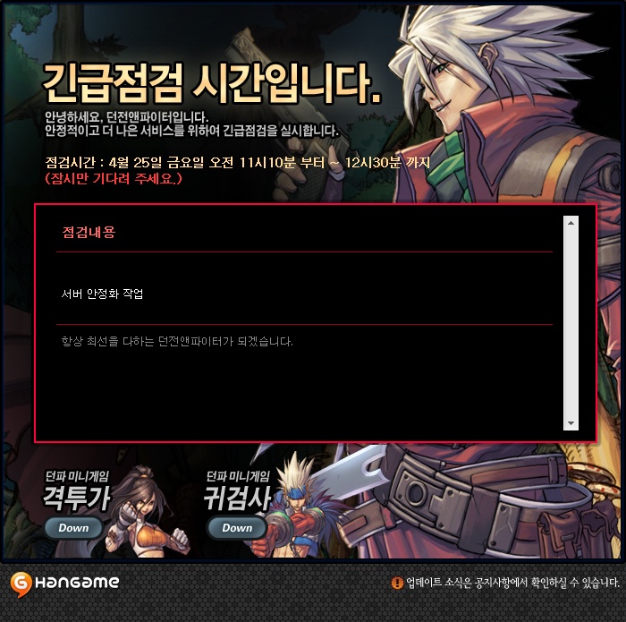 4대명검이라 불리던 과거 던전앤파이터 점검 시간, 그리고 미니 게임