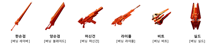 ① 풀 커스텀 물리 계열 무기 「버닝 시리즈」 6개