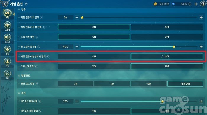 물 마실 때 방해되니 해당 옵션은 끄자 = 게임조선 촬영