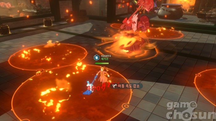 매운맛일 때 이거 맞으면 죽을 수 있으니 재빨리 피하자 = 게임조선 촬영