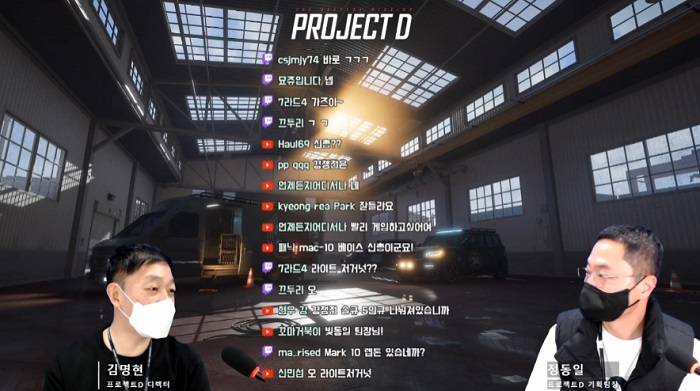 가장 먼저 정식 출시 일자에 대한 질문에는 "5월 스팀 테스트 이후 빠르게 출시할 계획"이라고 언급했으며, 프로젝트 D의 신규 모드 추가에 대한 질문에는 "현재 신규 모드에 대해서도 개발이 진행중"이라고 답했다. 또한 불법프로그램 대응책에 대해서는 "100% 막는 것은 어렵지만 최대한 빠르게 불법프로그램을 파악하고 이를 막도록 노력할 것"이라고 전했다. 이외에도 샷건과 바렛 등의 총기 추가가 기획돼 있다고 밝혔으며, 대형맵에 대한 준비도 이뤄지고 있다고 말했다.