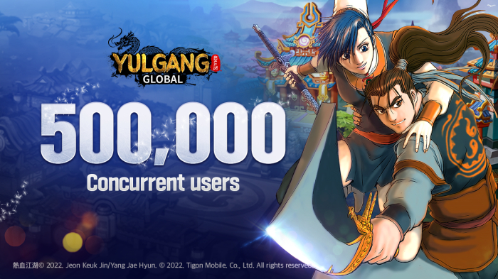 [자료제공 = 룽투코리아] 룽투코리아 자회사 타이곤모바일의 P2E 신작 게임 ‘열혈강호 글로벌’이 출시 1주일 만에 동시접속자수 50만명을 돌파했다.
