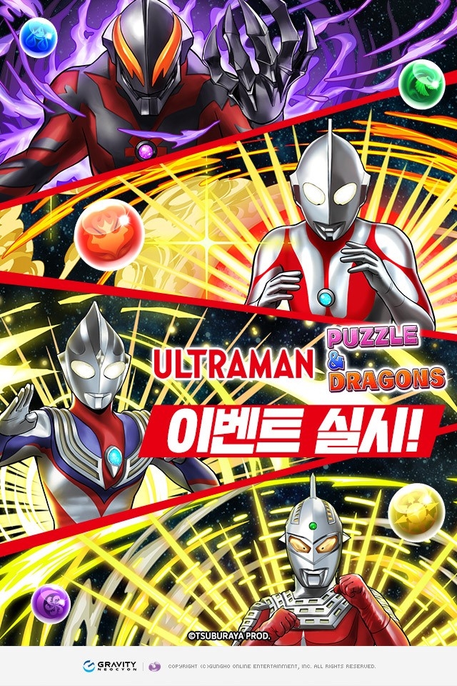 [자료제공 = 그라비티] 겅호 온라인 엔터테인먼트에서 개발하고 그라비티 네오싸이언이 서비스 중인 모바일 액션 퍼즐게임 ‘퍼즐앤드래곤’에서 11일부터 ‘울트라맨 시리즈’와 함께 이벤트를 진행한다.