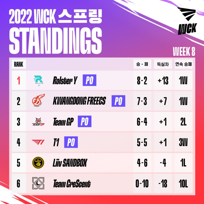 아직 WCK의 역사가 오래되지는 않았지만 롤스터 Y와 T1이 플레이오프에서 맞붙었을 때 승리한 팀이 우승을 차지했다. 그렇기에 16일 열리는 4강 PO에서 누가 승리할지 더욱 관심이 모이고 있다.