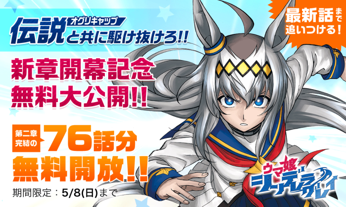 만약 일본어를 읽을 수 있다면 만화에도 눈을 돌려보자. 집영사에서 연재 중인 '우마무스메 신데렐라 그레이'가 최신장 개막을 기념에 2장 분량인 76화를 무료 공개하고 있다.