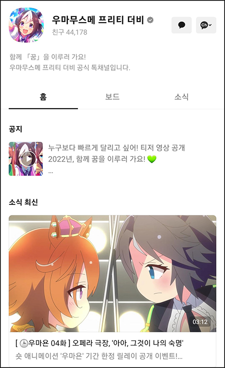■ 우마욘 카카오톡 공식 채널, 애니메이션 스트리밍 서비스