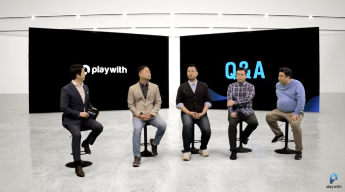 플레이위드가 구축하고 있는 블록체인 사업, 그리고 메타버스에 대한 비전을 소개한 후에는 Q&A 시간이 마련됐다. 해당 Q&A에는 플레이위드 박정현 상무, 이재용 본부장, 플레이위드게임즈 김정주 이사, 그리고 BPMG 차지훈 대표가 자리해 다양한 형태의 질문에 답했다.