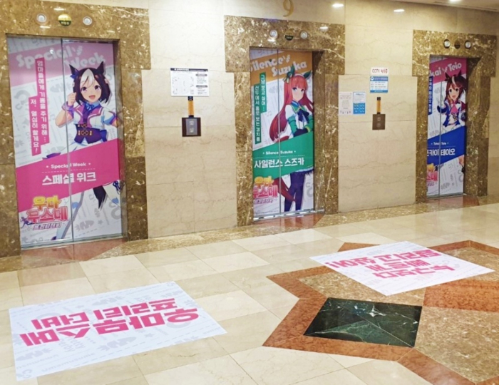 이번 광고는 외벽과 내부 양쪽에 전시됐다. 외벽에 설치된 광고는 우마무스메 프리티 더비에서 육성할 수 있는 캐릭터 '우마무스메'들이 레이스를 펼치는 모습으로 연출됐으며, 내부 광고는 스페셜 위크, 사일런스 스즈카, 토카이 테이오 등 작품의 주역 캐릭터들로 구성했다.