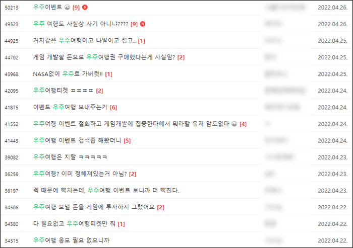 한편, 우주여행권 응모 자체는 어디까지나 이벤트의 '연장선'인 만큼 문제 될 것은 없다. 엔젤게임즈 입장에서는 다소 억울할 수 있는 것도 사실이다. 문제는 게임 자체가 서버나 버그, 콘텐츠, 최적화 등에서 몸살을 앓는 데다, 유저를 배려하지 않은 지나친 보여주기식 이벤트라는 부분에 있어서 유저에게 반감을 불러일으키고 있는 실정이다.