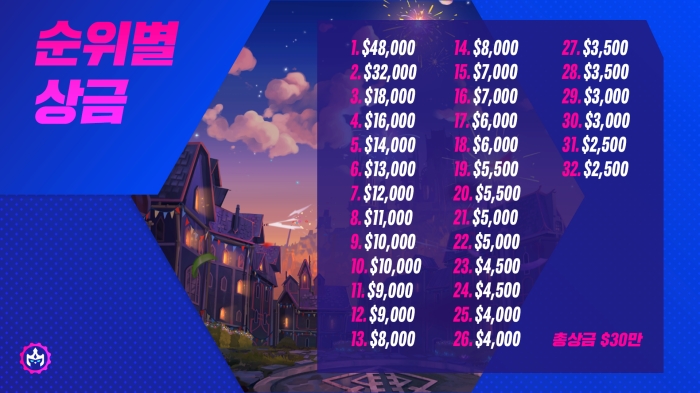 우승자에게는 4만 8,000 달러(한화 약 6,000만 원), 2위에게는 3만 2,000 달러(한화 약 4,000만 원), 3위 1만 8,000 달러(한화 약 2,230만 원) 등이 순위에 따라 차등 지급된다.