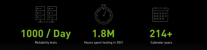 엔비디아 지포스 게임 레디 드라이버는 2014년 5월 출시 이후 동급 최고로 자리잡았으며, 엔비디아의 새 영상은 게임 레디 드라이버를 구축하는 필수 기술들을 설명한다. 엔비디아의 게임 레디 드라이버는 단 하루 만에 다양한 최신 게임 타이틀과 발매 예정 타이틀을 대상으로 1,000개 이상의 다양한 테스트를 수행한다. 이는 2021년에만 180만 시간 이상의 테스트가 진행됐으며, 한 해 동안 무려 214년 이상의 시간이 게임 레디 드라이버 품질 향상에 투자됐음을 의미한다.