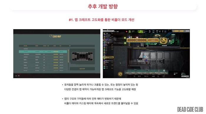 개선이 이뤄진 데드사이드클럽은 프리 테스트 형태로 오는 6월 중 만나볼 수 있을 예정이며, 프리 테스트의 주요 목적은 유저 피드백 및 의견 수렴이라고 설명했다.