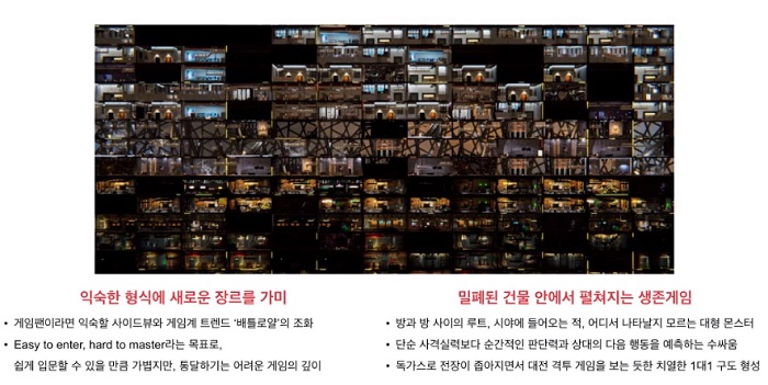 배틀로얄 모드의 경우에는 실력 기반의 매칭 메이킹 시스템이 제공되며 지속적 밸런스 조정을 통해서 스쿼드 인원 수 및 레벨 디자인, 캐릭터 조작 등을 지속적으로 수정한다는 점도 강조했다.