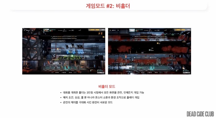 비홀더 모드는 데드사이드클럽이 줄 수 있는 관전의 재미를 극대화했으며 스트리머들이 2차 콘텐츠를 생산하는 데에 적극 활용될 것으로 기대된다.