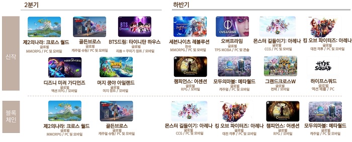 6월 23일에는 '디즈니 미러 가디언즈'가 출시되며, 6월 중 '머지 쿵야 아일랜드' 역시 그랜드 론칭할 예정이다. 구체적으로 공개되지는 않았지만, 캐주얼 슈팅 게임 '골든브로스' 2분기에 출시한다.