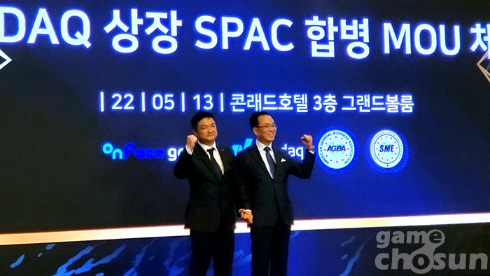 온페이스게임즈(대표 김민석)은 13일 여의도 콘래드서울에서 국내 첫번째 스팩(SPAC) 합병을 통한 나스닥 상장 MOU 체결식을 AGBA(미국연합상업협회)와 갖고 기자간담회를 실시했다.