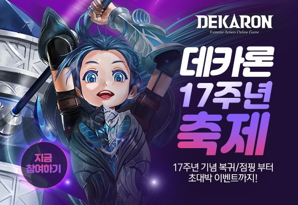 17주년 기념 이벤트는 오랜만에 돌아오거나 새로시작하는 복귀 유저와 지금까지 데카론을 이용하던 기존 유저들에게 서로 다른 보상이 제공되며, 새로 시작하는 신규 유저들도 성장에 필요로하는 특급 아이템들이 모두 제공되어 빠른 성장이 가능하다.