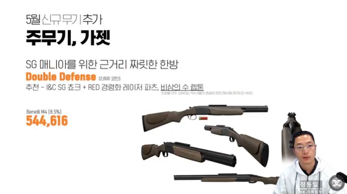 5월 테스트에 적용될 패치 노트에 대해서는 정동일 기획팀장이 소개를 맡았다. 정동일 기획팀장은 "지난 12월 테스트 때부터 4월 테스트까지 유저분들이 플레이해주신 라운드 수가 110만 건이 넘는다"라고 전하면서 "유저분들의 플레이 및 의견은 개발에 중요한 자양분이 된다"라고 밝혔다. 이어서 "유저분들 덕분에 베일드 엑스퍼트가 완성되어가고 있다"라고 감사의 뜻을 전했다.