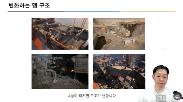 지난 테스트에 대한 리뷰 이후에는 5월 테스트에 중점적으로 다뤄질 내용에 대해 소개했다. 이번 테스트에서는 A 지점이 폭파할 경우 맵 내 구조물이 변경되는 시스템이 적용될 예정이며, 이를 통해 동일한 맵에서 다른 구조를 만나볼 수 있다. 벽이나 건물을 무너뜨리는 요소도 확대돼 더욱 전술적인 플레이를 즐길 수 있다.